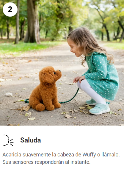Wuffy es diferente de los juguetes robóticos comunes que solo hacen trucos. Usa inteligencia artificial para actuar como un cachorro de verdad: camina, ladra, mueve la cola y se sienta feliz cuando lo acaricias.